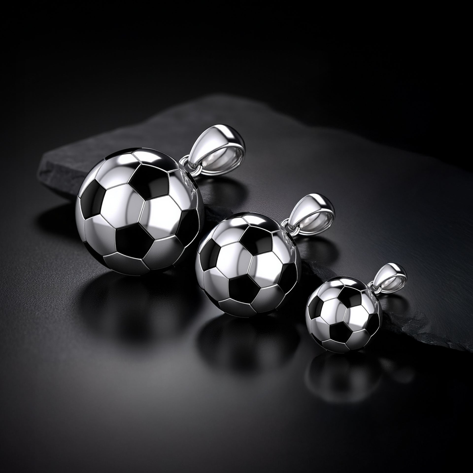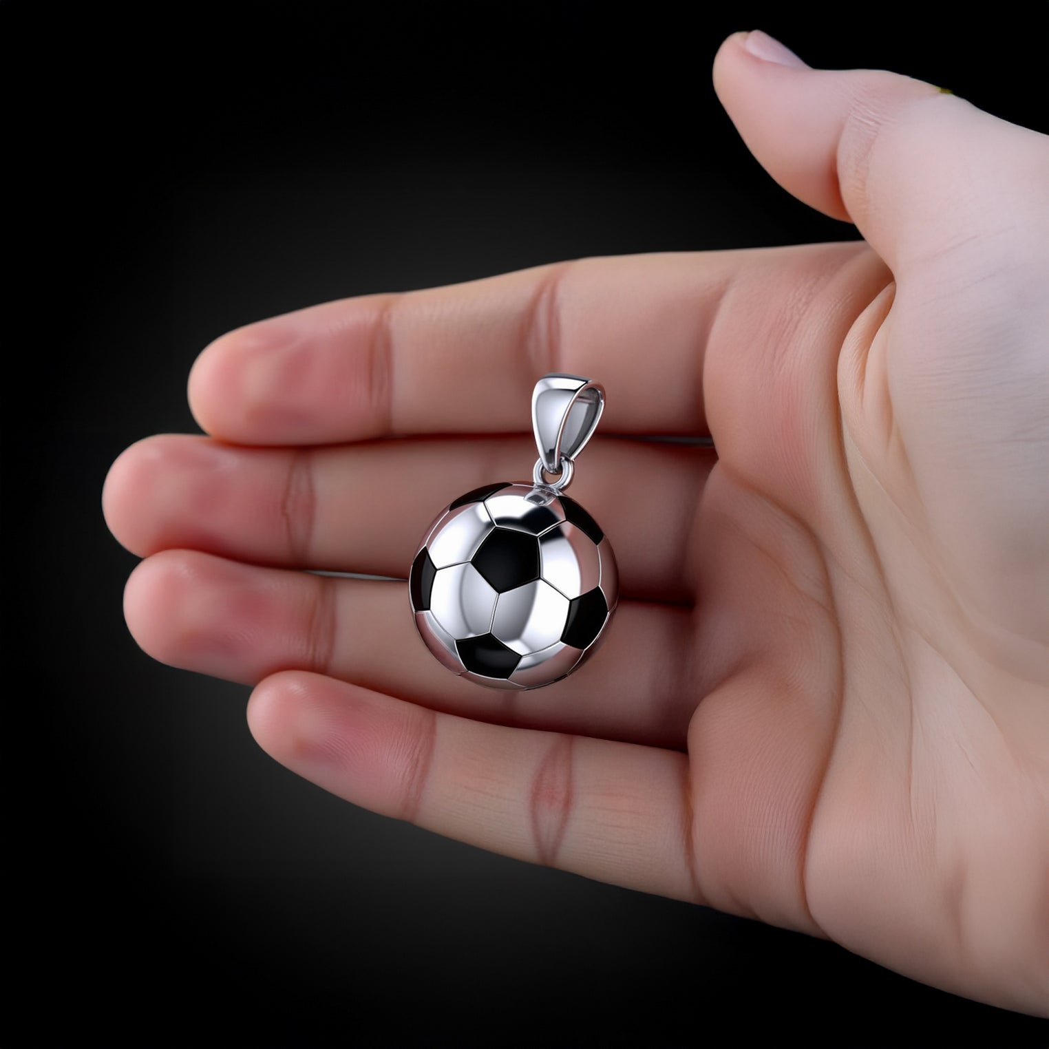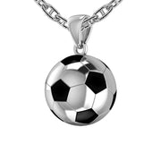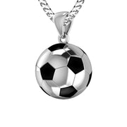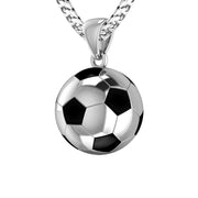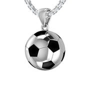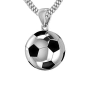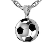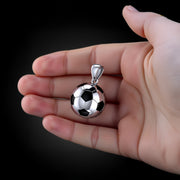 Men's Large 925 Sterling Silver 3D Soccer Ball Football Pendant Necklace, 18.5mm