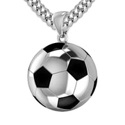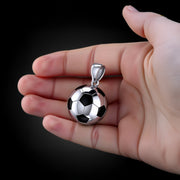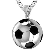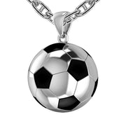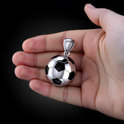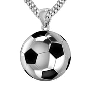 Men's Extra Large 925 Sterling Silver 3D Soccer Ball Football Pendant Necklace, 25mm