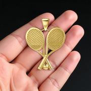 Men's 10K Yellow or White Gold 3D Large Double Tennis Racket & Ball Sports Pendant, 40mm