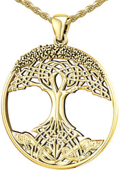 Ladies 1 3/8in 14k Yellow Gold Modern Tree Of Life Pendant Necklace