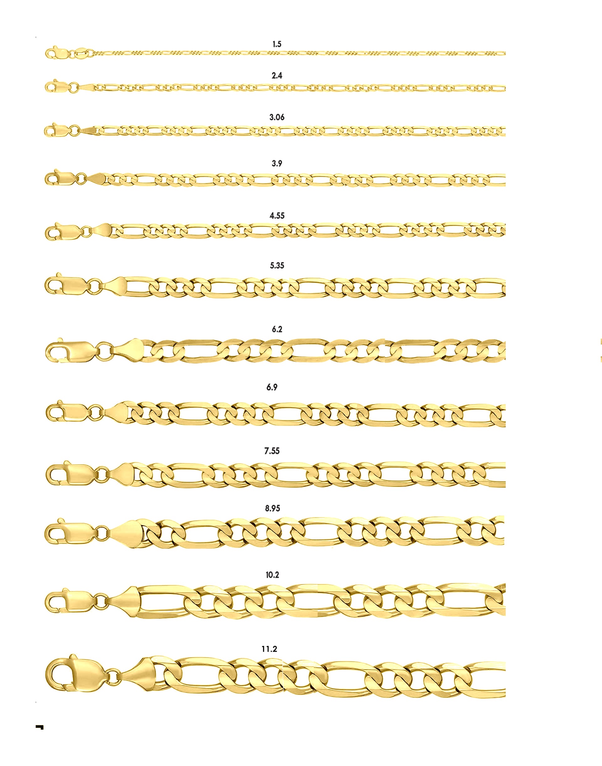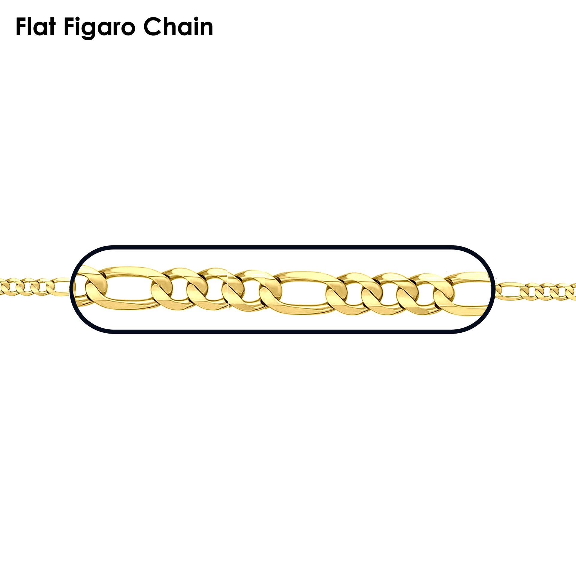 Solid 14K Yellow Gold Prime Link Figaro Chain Necklace, 12 Sizes 1.5mm - 9.0m