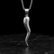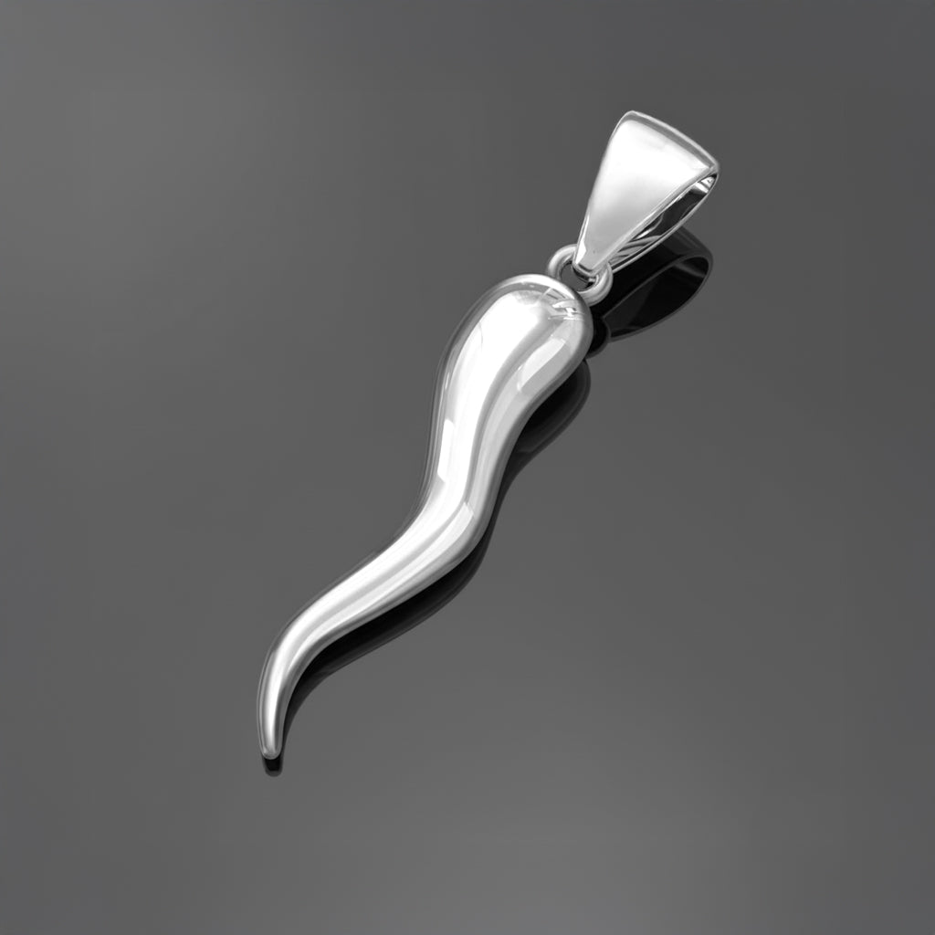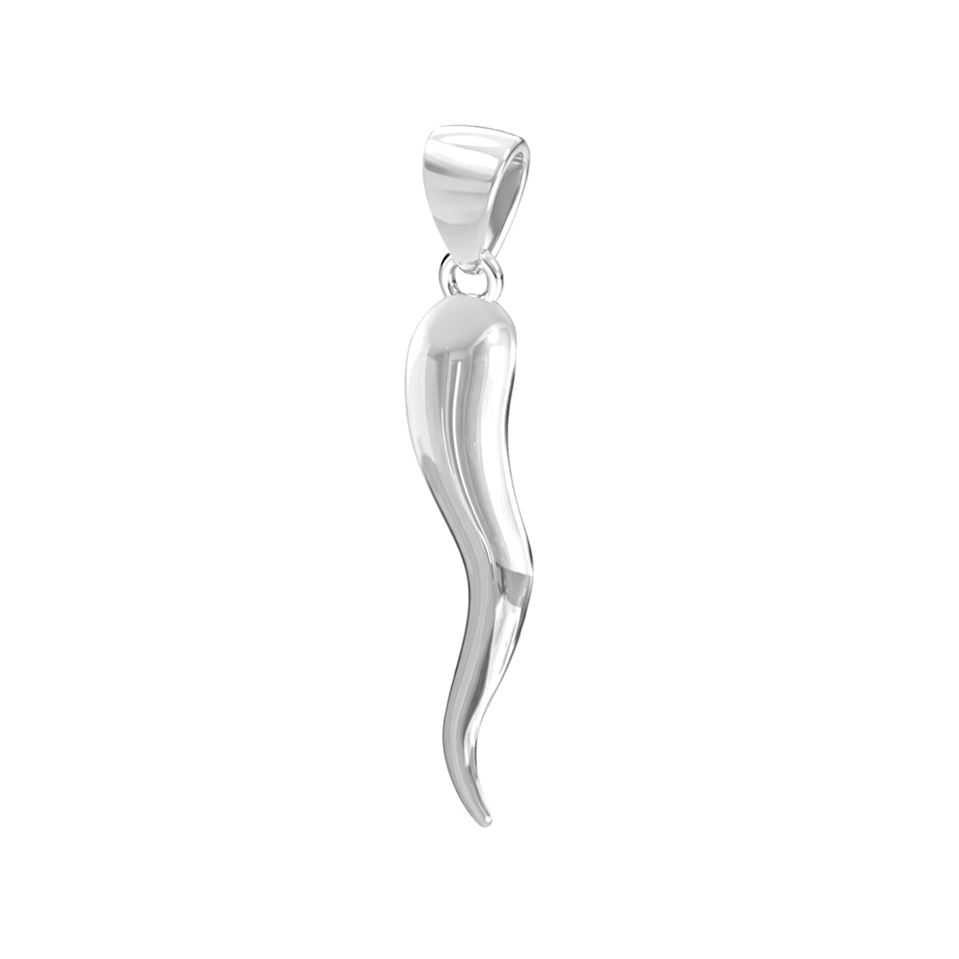 This Italian horn or Cornicello amulet is worn for protection against evil spirits or curses. It is popular in the USA with descendants of Italian immigrants and by the general public as a fashion statement. Unlike other manufacturers, our Italian horn pendant is solid sterling silver, not hollow.