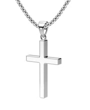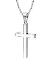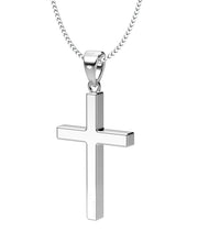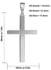 Ladies Sterling Silver Christian Cross Pendant Necklace 2.5mm x 2.5mm Box Design, 26mm