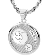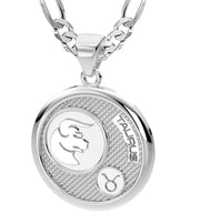 Men's 925 Sterling Silver Round Taurus Zodiac Polished Finish Pendant Necklace, 33mm