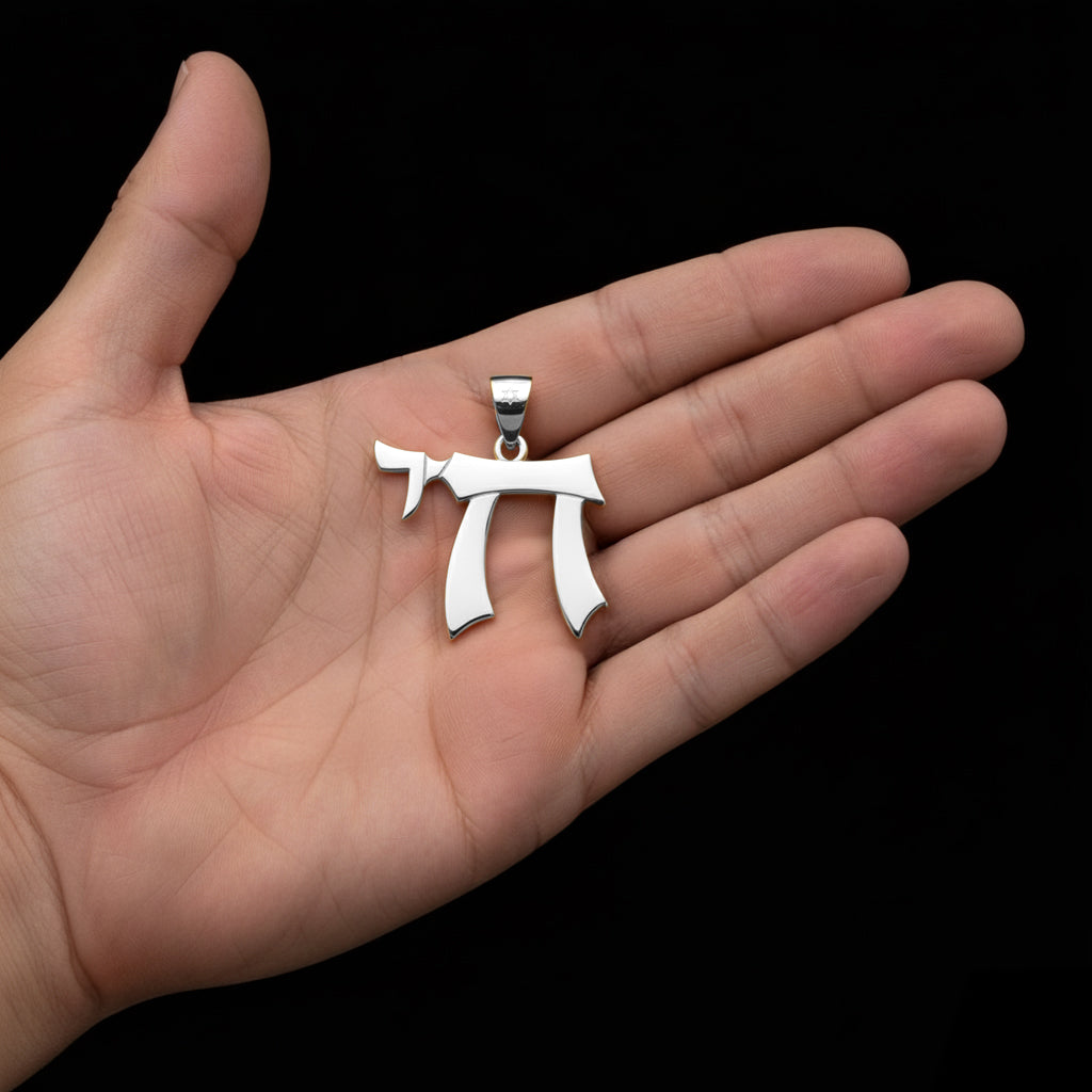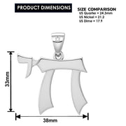 Men's Large 925 Sterling Silver Jewish Chai Sign of Life Pendant Necklace, 33mm