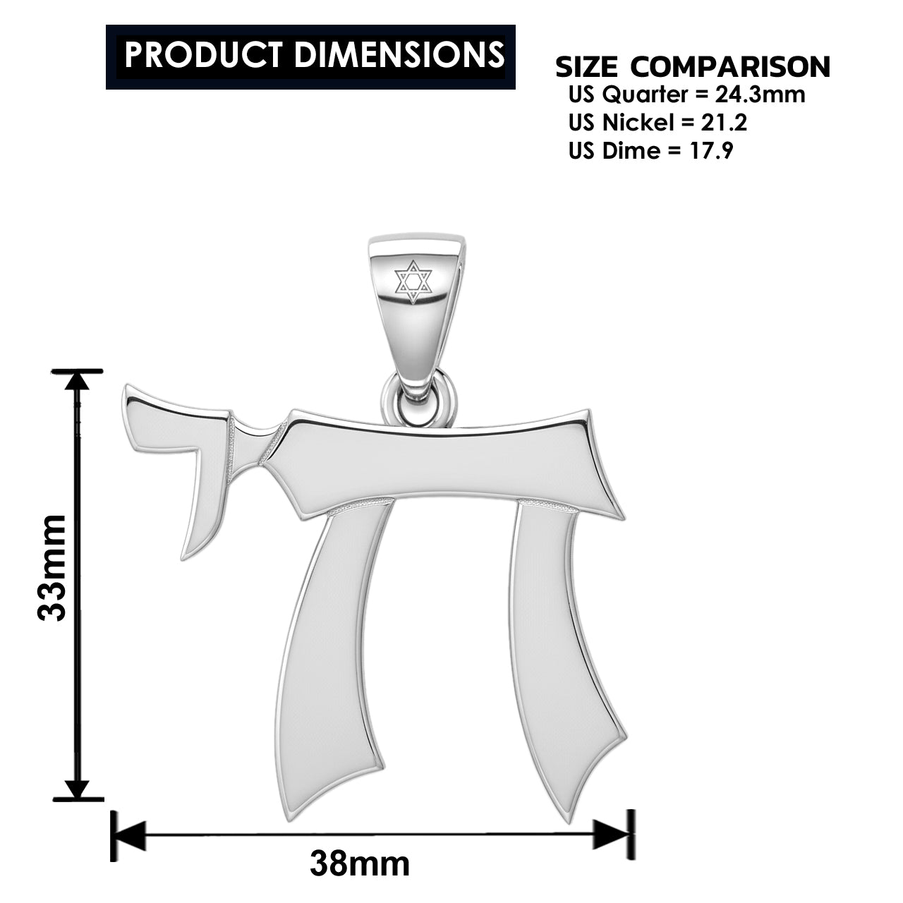 Proudly display your Jewish pride with our new religious line of jewelry. Designed to be as strong and durable as your faith, our new Chai pendant will last a lifetime. It has a solid construction, detailed embossed features, and a high polished finish.
