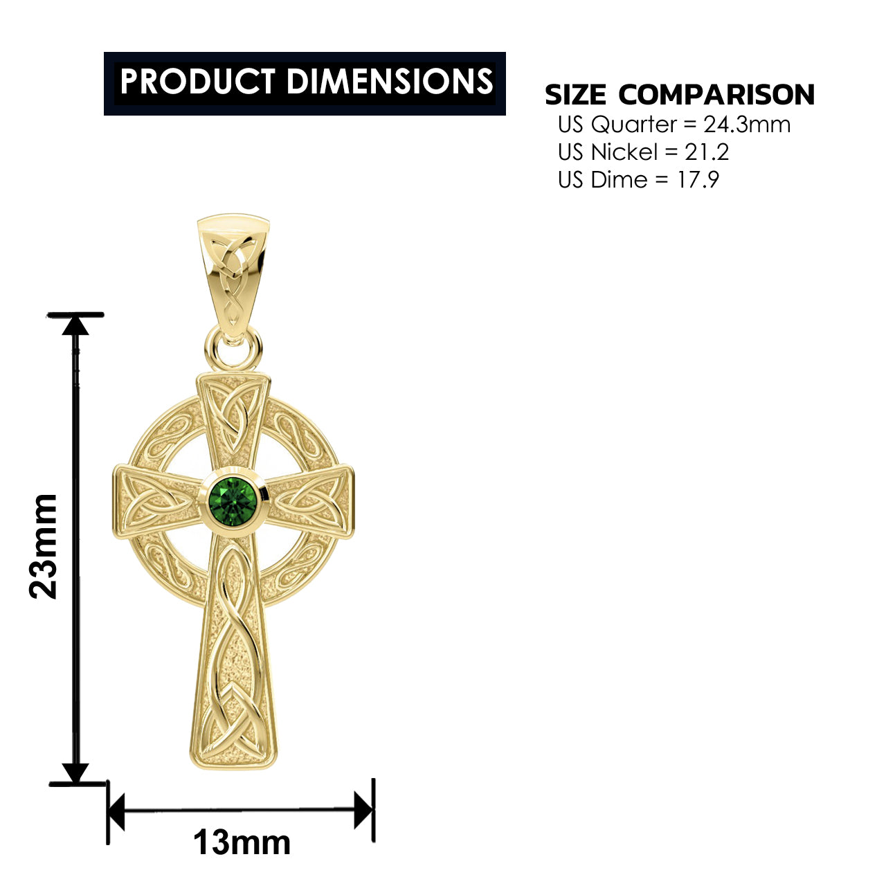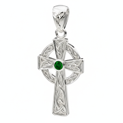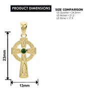 Small Petite Solid 10k or 14k Yellow or White Gold Irish Celtic Knot Birthstone Cross Pendant, 23mm