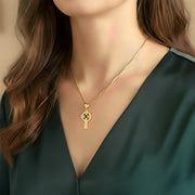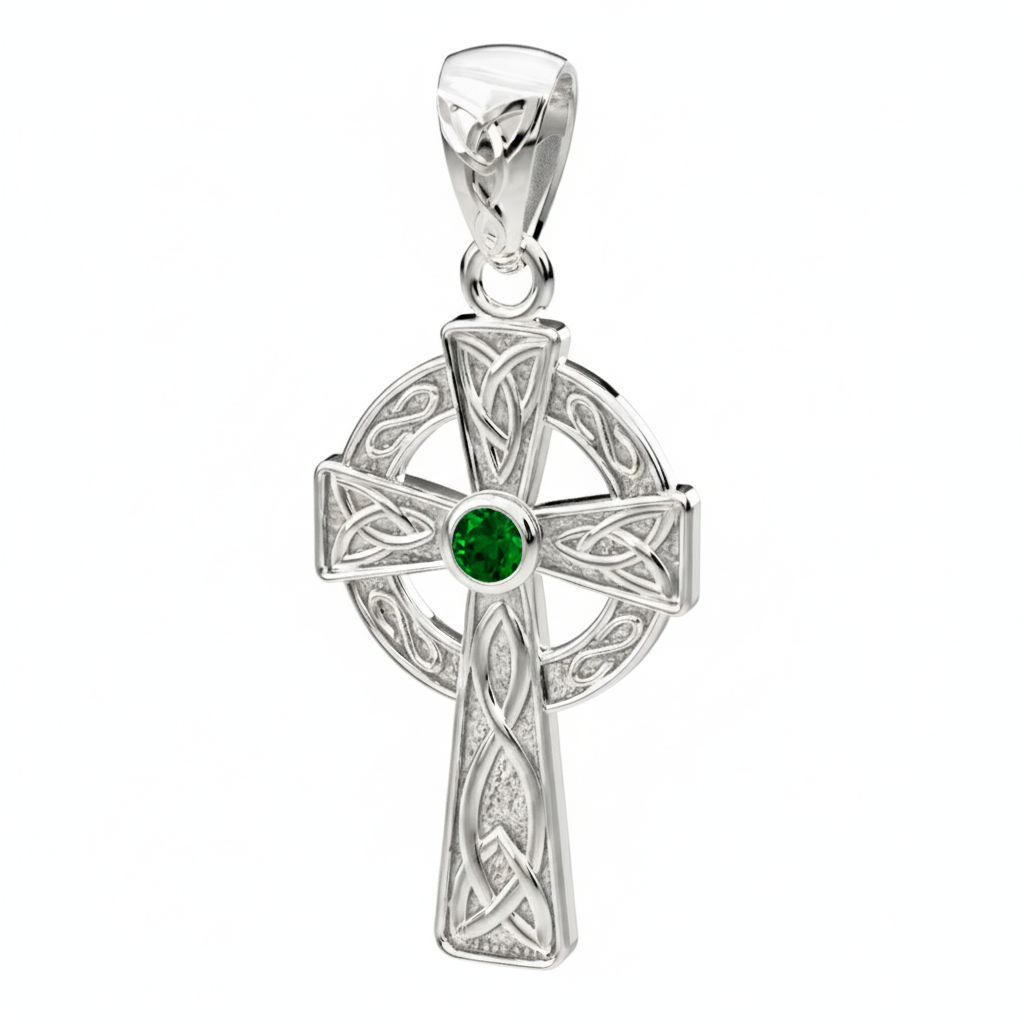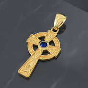 Handcrafted from 14k gold, this pendant features a center birthstone, a nimbus, trinity knots, solid construction and polished finish. The iconic Celtic cross is a traditional symbol of faith and spirituality showcasing the beauty of Celtic craftsmanship.
